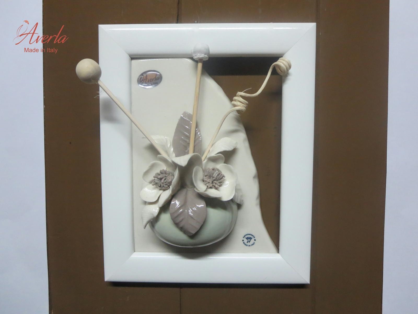 Cornice AVERLA Con Profumatore Cipria Con 2 Fiori Ikebana H.18x15 Cm Con Scatola