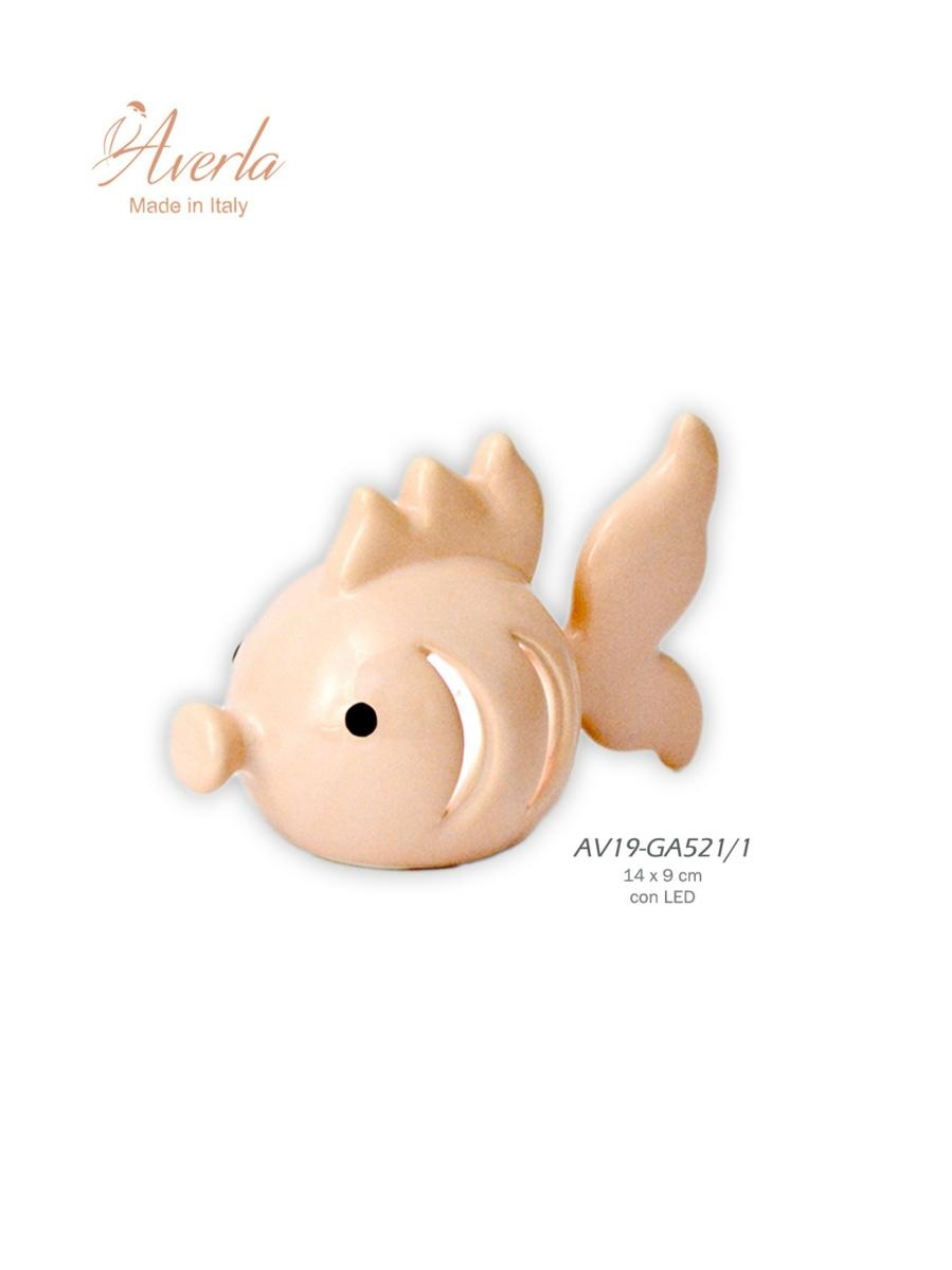 Pesce Marina in Ceramica Di Capodimonte Cipria Con Led 14xh.12Cm Completa Di Scatola