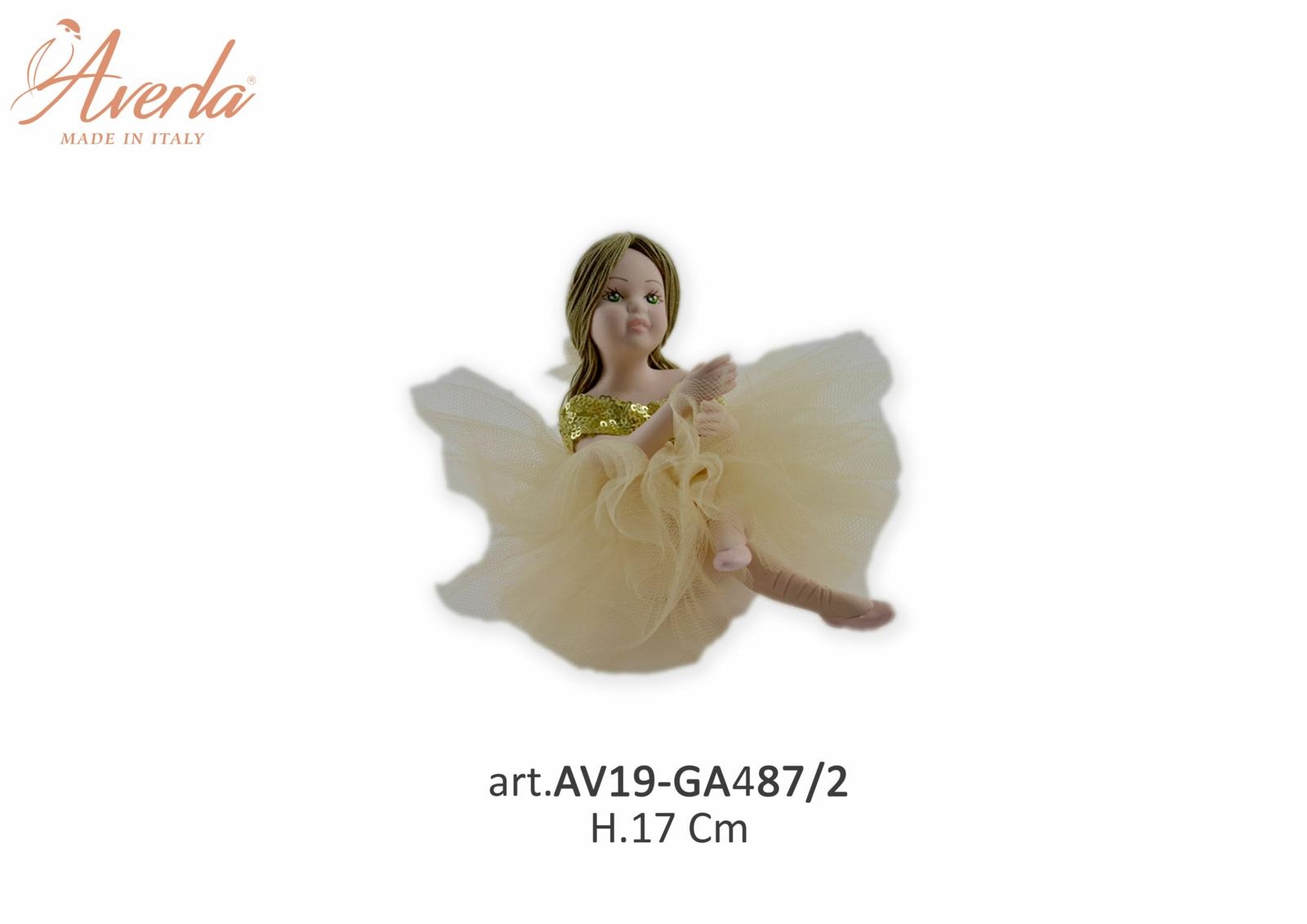 Ballerina Seduta Con Vestito Paillettes Oro H.17 Cm In Porcellana Di Capodimonte Completa Di Scatola Trofeo