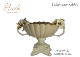 Coppa Max Tonda Con Piede In Porcellana Di Capodimonte Colore Sabbia Con Fiori 27x18xh.20 Cm Completa Di Scatola