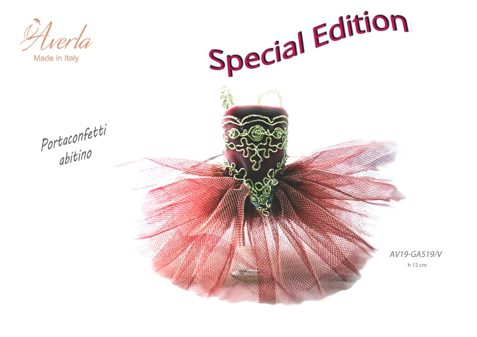 Portaconfetti Abitino Vestito Velluto Rosso e Tulle h.16 Cm