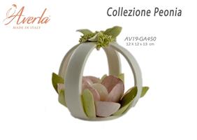 Candeliere In Porcellana Di Capodimonte Con Peonia Centrale 12x12Xh.13 Cm Completo Di Astuccio