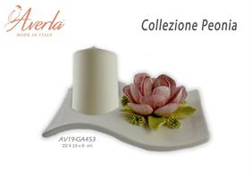 Svuotatasche Portacandela In Porcellana Di Capodimonte Con Peonia 22x15xh.6 Cm Completo Di Astuccio