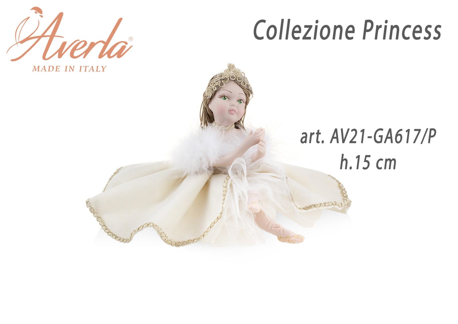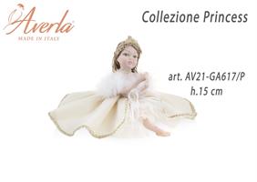 Dama Grande Seduta In Porcellana Di Capodimonte Con Vestito Velluto Panna Con Corona H.15 Cm Collezione Princess Completa Di Astuccio