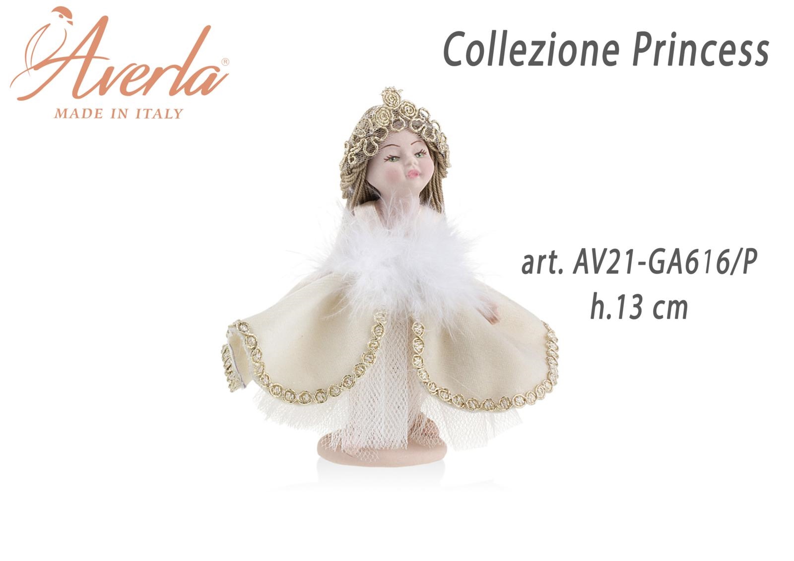 Damina Piccola In Porcellana Di Capodimonte Con Vestito Velluto Panna Con Corona Collezione Princess H.13 Cm Completa Di Astuccio