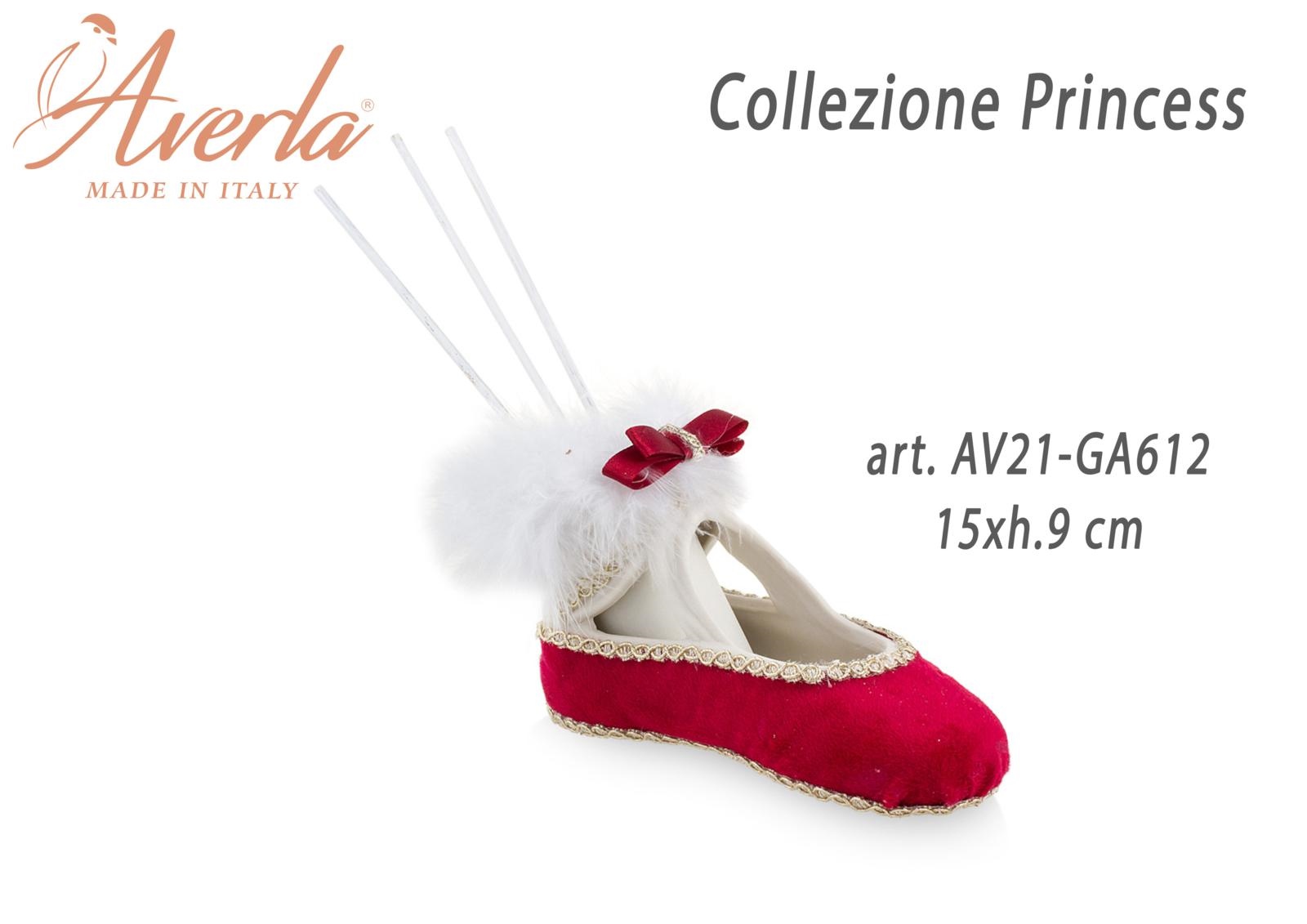 Profumatore Scarpa In Velluto Rosso Con Marabout In Porcellana Di Capodimonte Collezione Princess 15xh.9 Cm Completo Di Astuccio