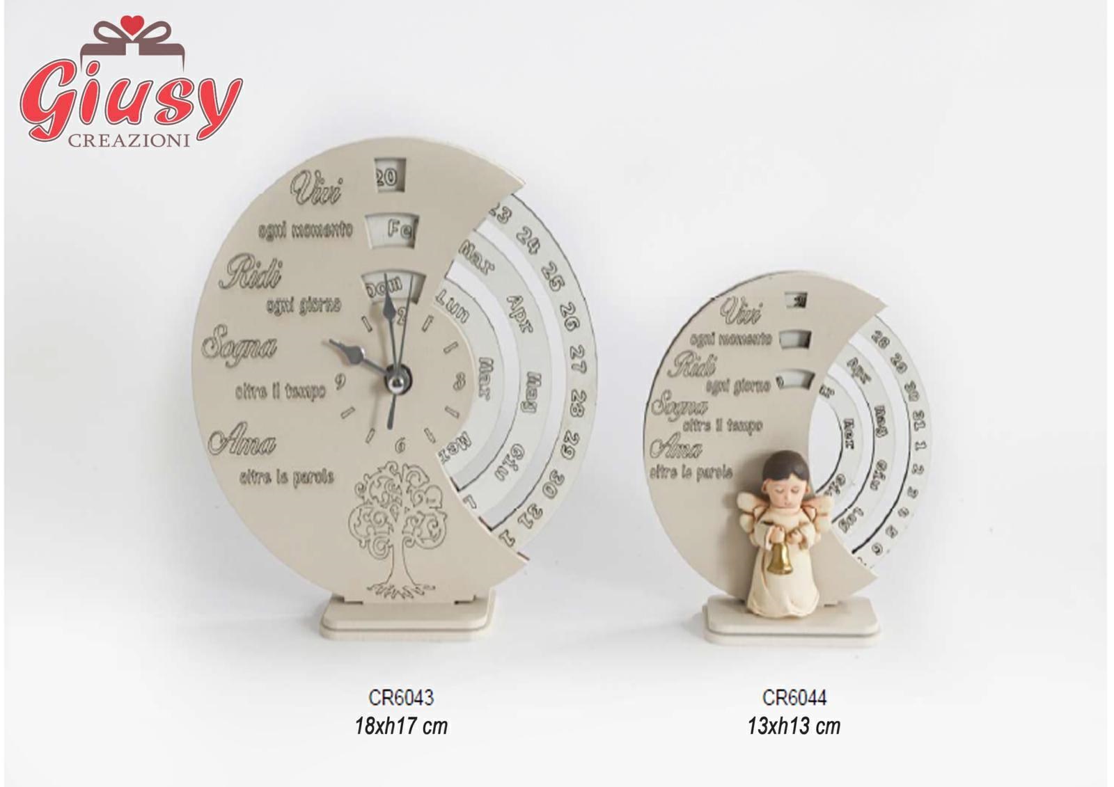 Calendario In Legno Con Angelo In resina Color Sabbia