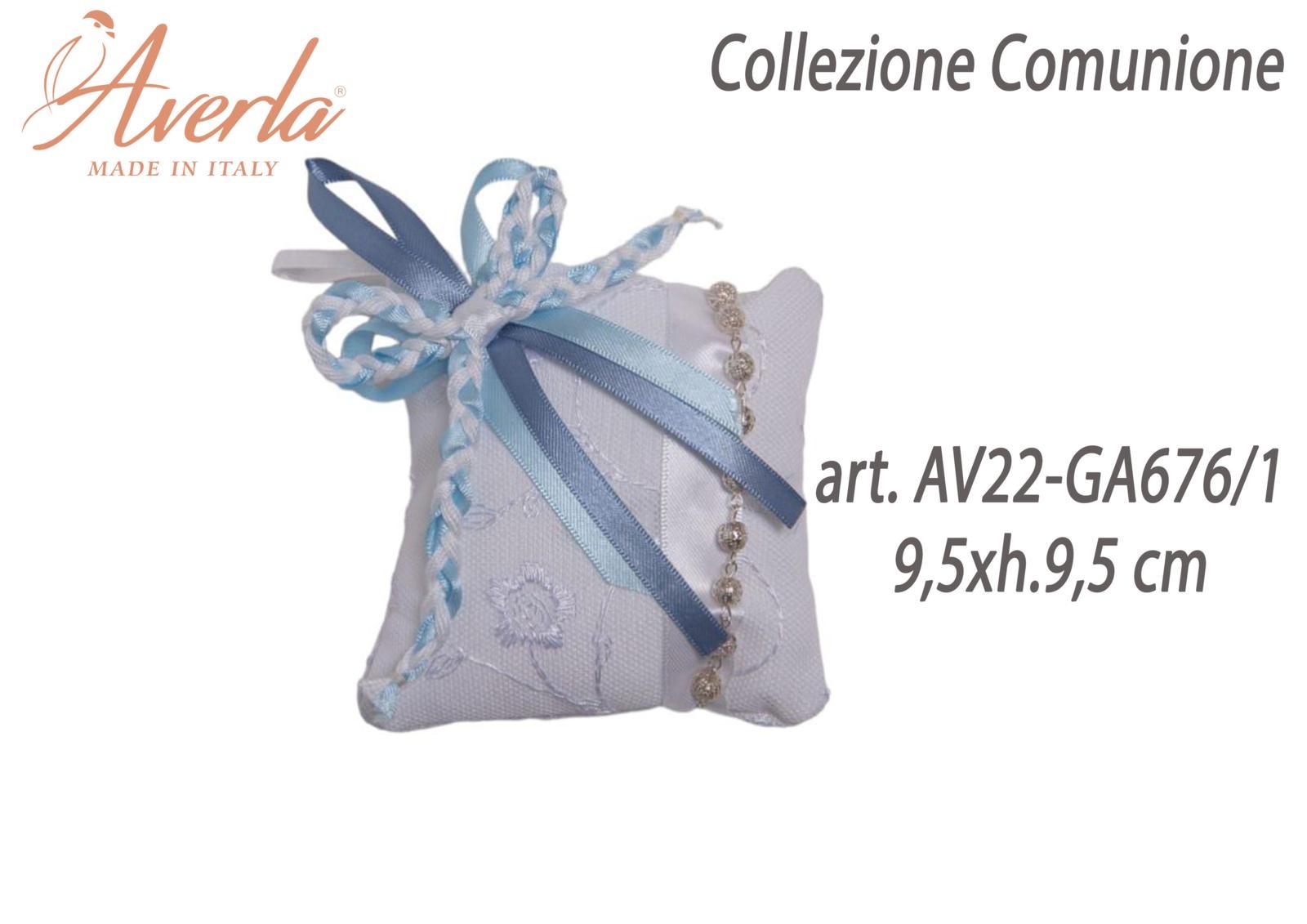 Cuscino Azzurro Polvere Con Bracciale 9,5xh.9,5 Cm Collezione Comunione Bimba