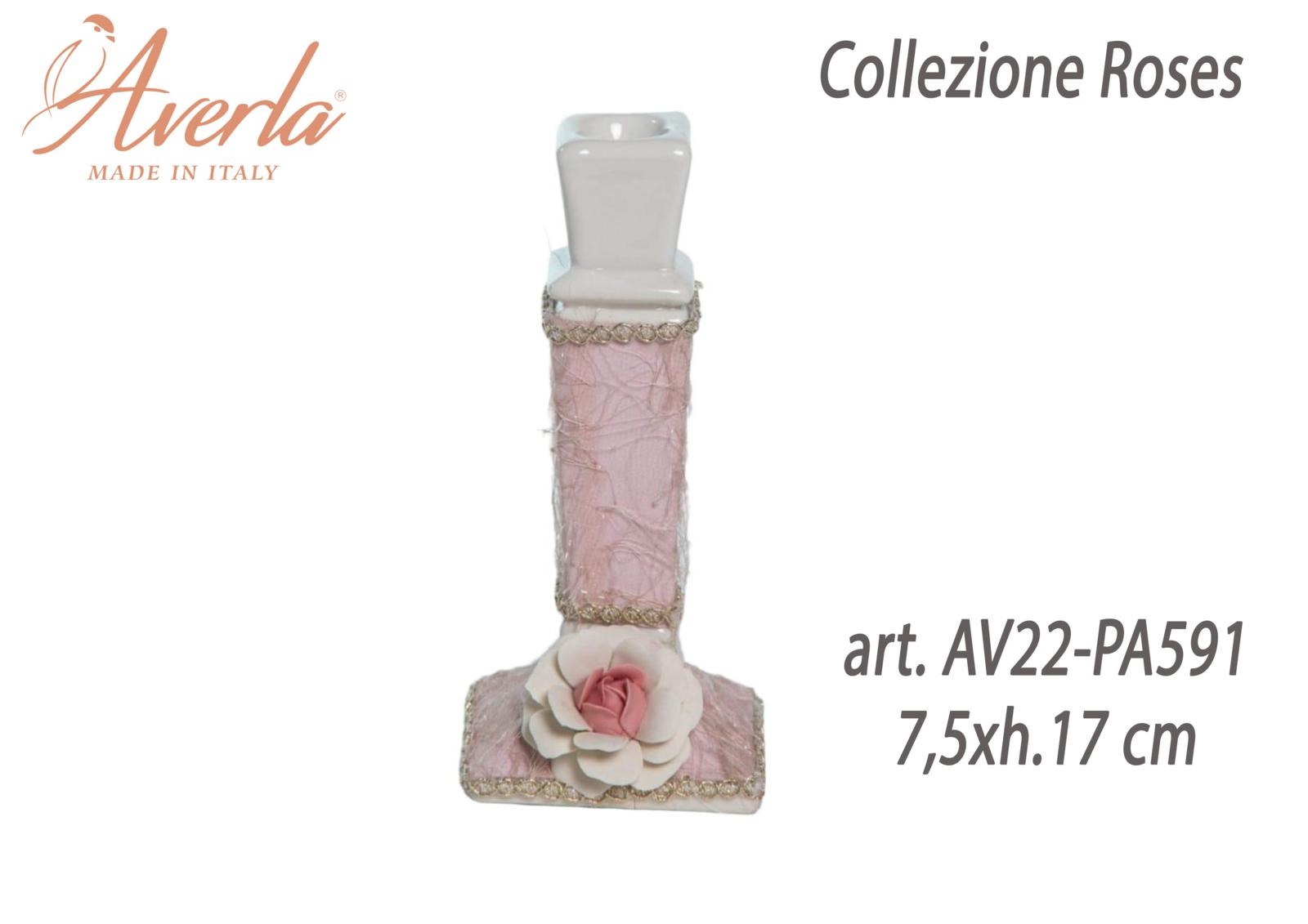 Candeliere Con Rosa In Porcellana Di Capodimonte 7,5xh.17 Cm Completo Di Astuccio Cilindro Collezione Roses