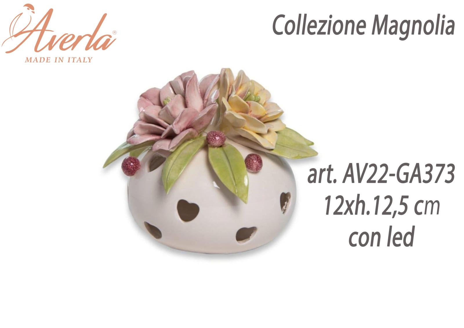 Sfera Media Con Led In Ceramica Di Capodimonte 12,5xh.12,5 Cm Completo Di Astuccio Cilindro Collezione Magnolia