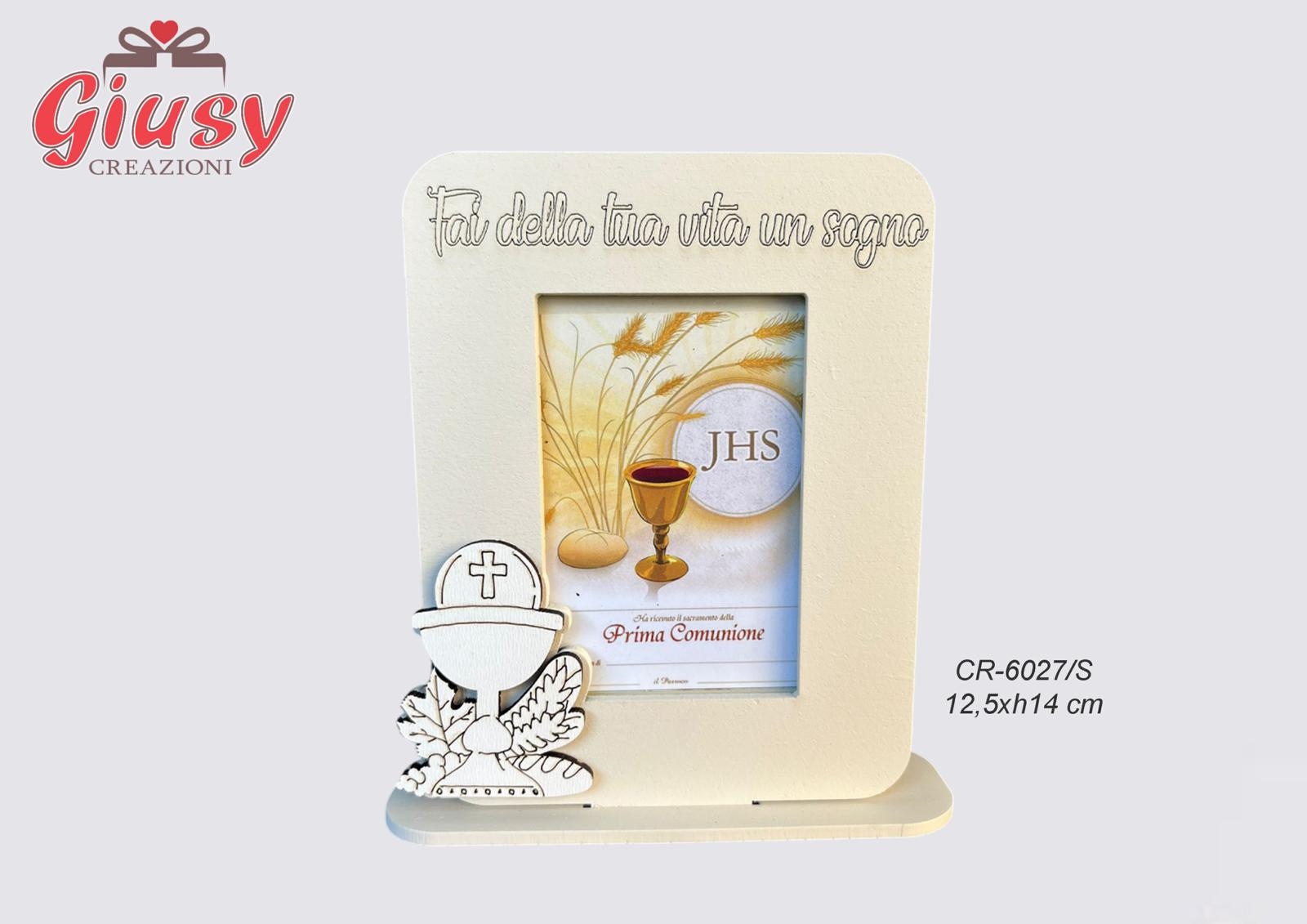 Portafoto Con Calice Comunione In Legno Color Sabbia 12,5xH.14 Cm Completo Di Scatola