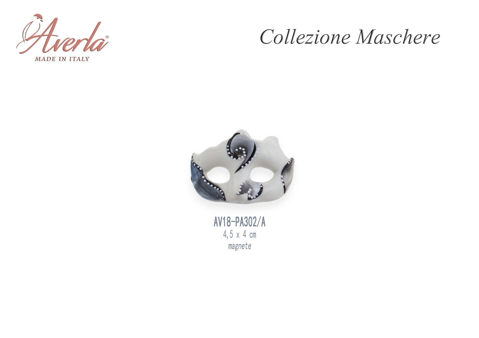 Maschera A Magnete Con Decori Grigio E Nero 4,5x4 Cm In Porcellana Di Capodimonte