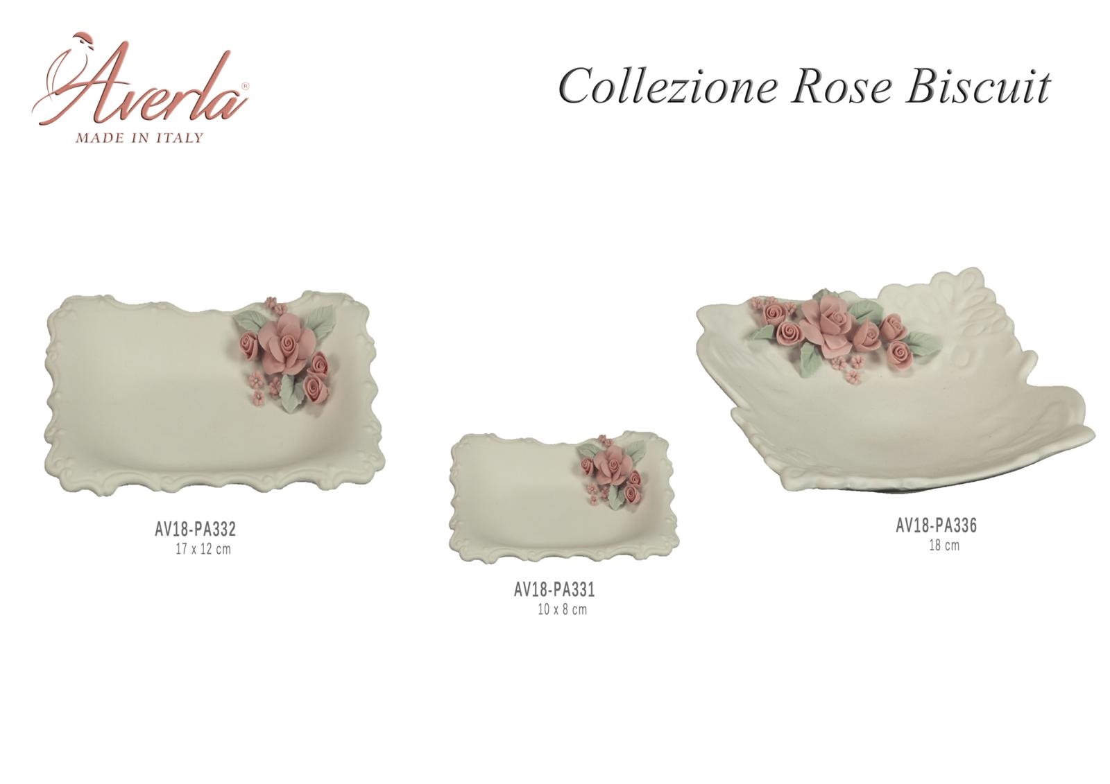 Piattino Rettangolare Piccolo Biscuit Bianco Con Rose 10x8 Cm In Porcellana Di Capodimonte Completo Di Scatola Trofeo