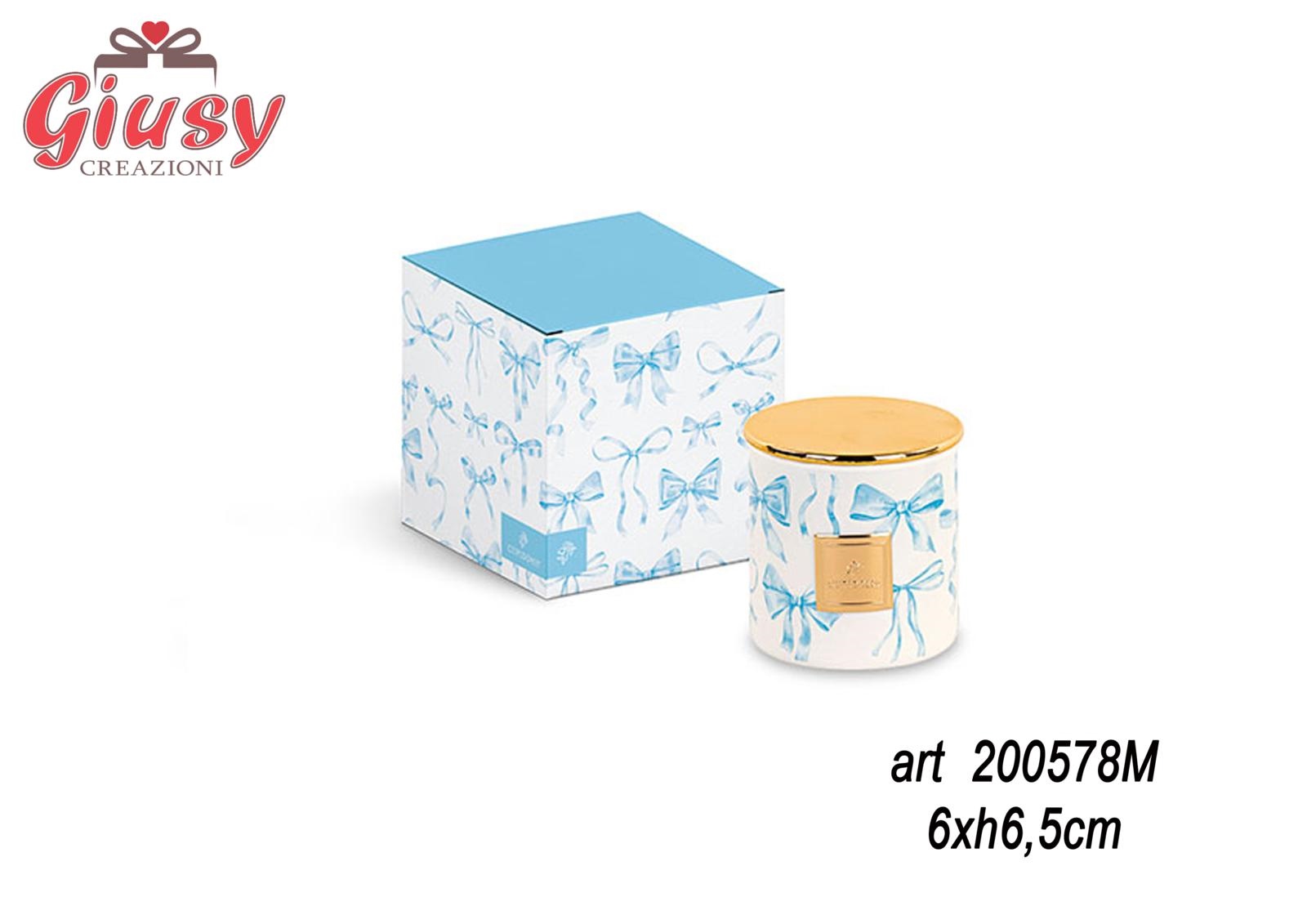 Candela 80 Grammi In Barattolo Vetro Con Fiocchi Azzurri 6x6,5CmCompleto Di Scatola 1*48