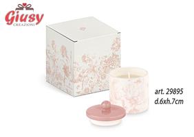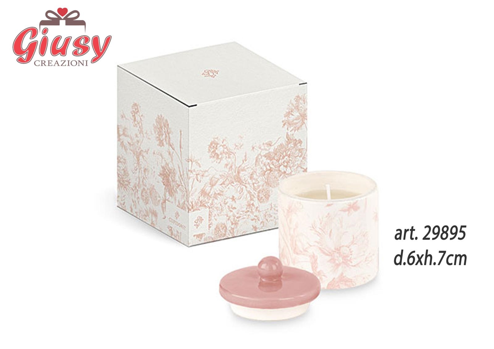 Candela Profumata Con Barattolo In Porcellana Decoro Toile De Jouy Color Cipria d.6xH.7 Cm Completo Di Scatola 1*96