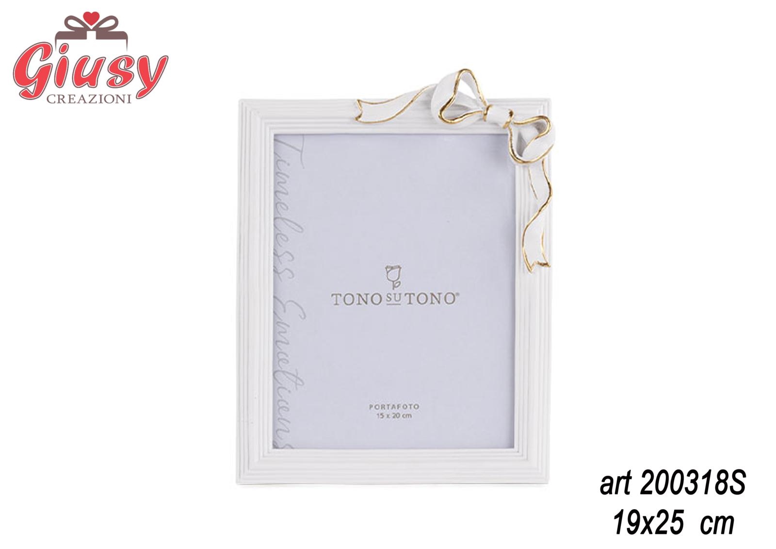 Portafoto Con Fiocchi Color Bianco E Oro In Poliresina 19x25 Cm 3*18