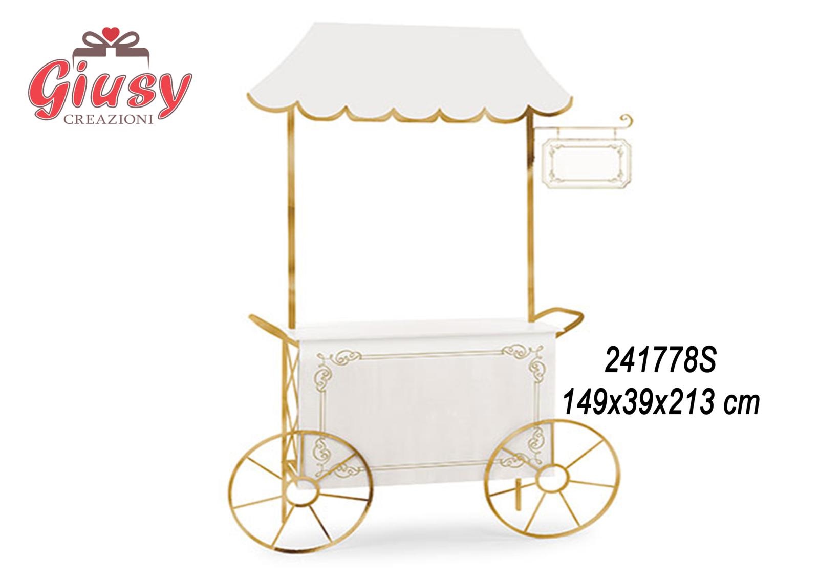 Carretto Bianco/Oro In Metallo 149x39x213 Cm Portata Massima 35Kg