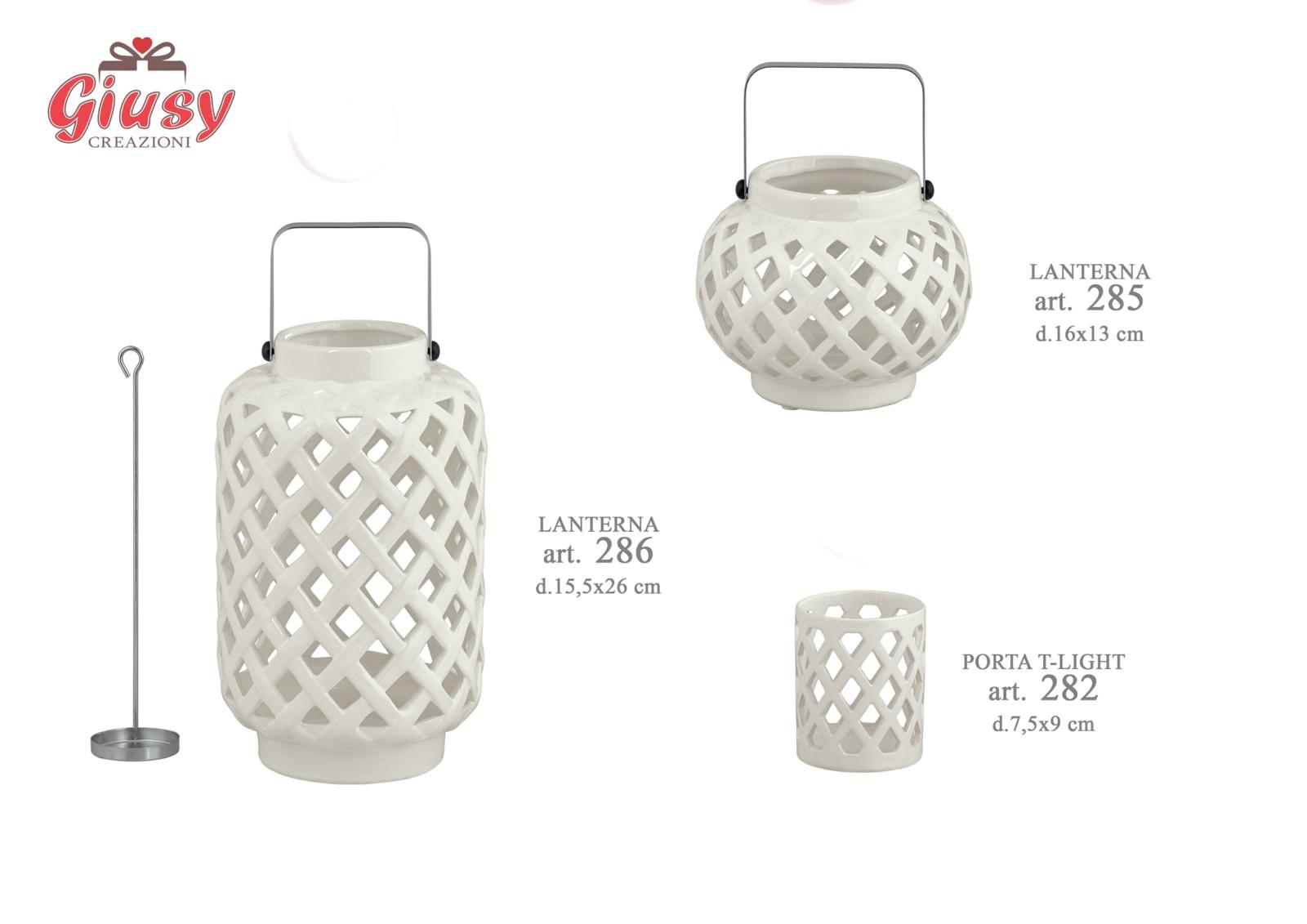 Porta T-Light Con Rombi In Porcellana 7.5x9 Cm 6*24