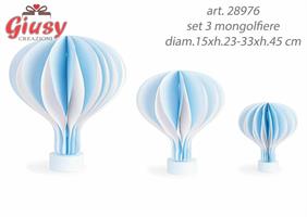 Set 3 Mongolfiere In Azzurro Con Base Legno Diam.15xh.23-33xh.45 Cm 1*12