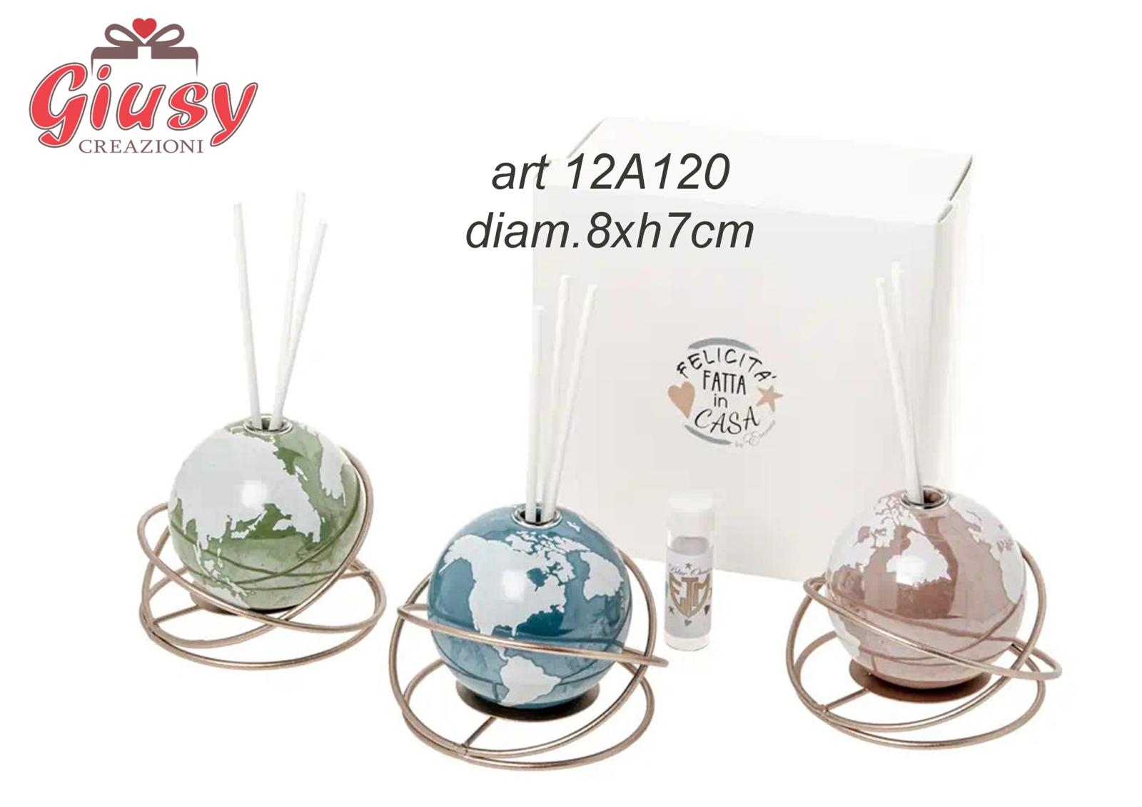 Profumatore Fantasy In Porcellana Su Base In Metallo 3 Soggetti Assortiti Diametro 8xH.7 Cm Completo Di Essenza E Scatola 1*48