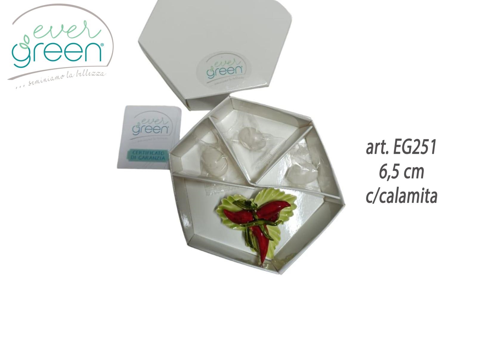 Tralcio Con Foglie E Mini Peperoncini In Ceramica Di Capodimonte 6,5 Cm Con Magnete E Con Scatola Degustazione
