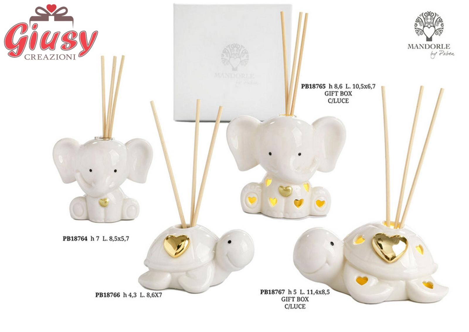 Diffondiprofumo Elefante In Porcellana Con Cuore Decorato In Oro Con Led Completo Di Astuccio 1*36
