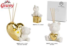 Diffondiprofumo Orsetto In Porcellana Con Cuore Decorato In Oro 8,8 Cm Completo Di Scatola 1*48