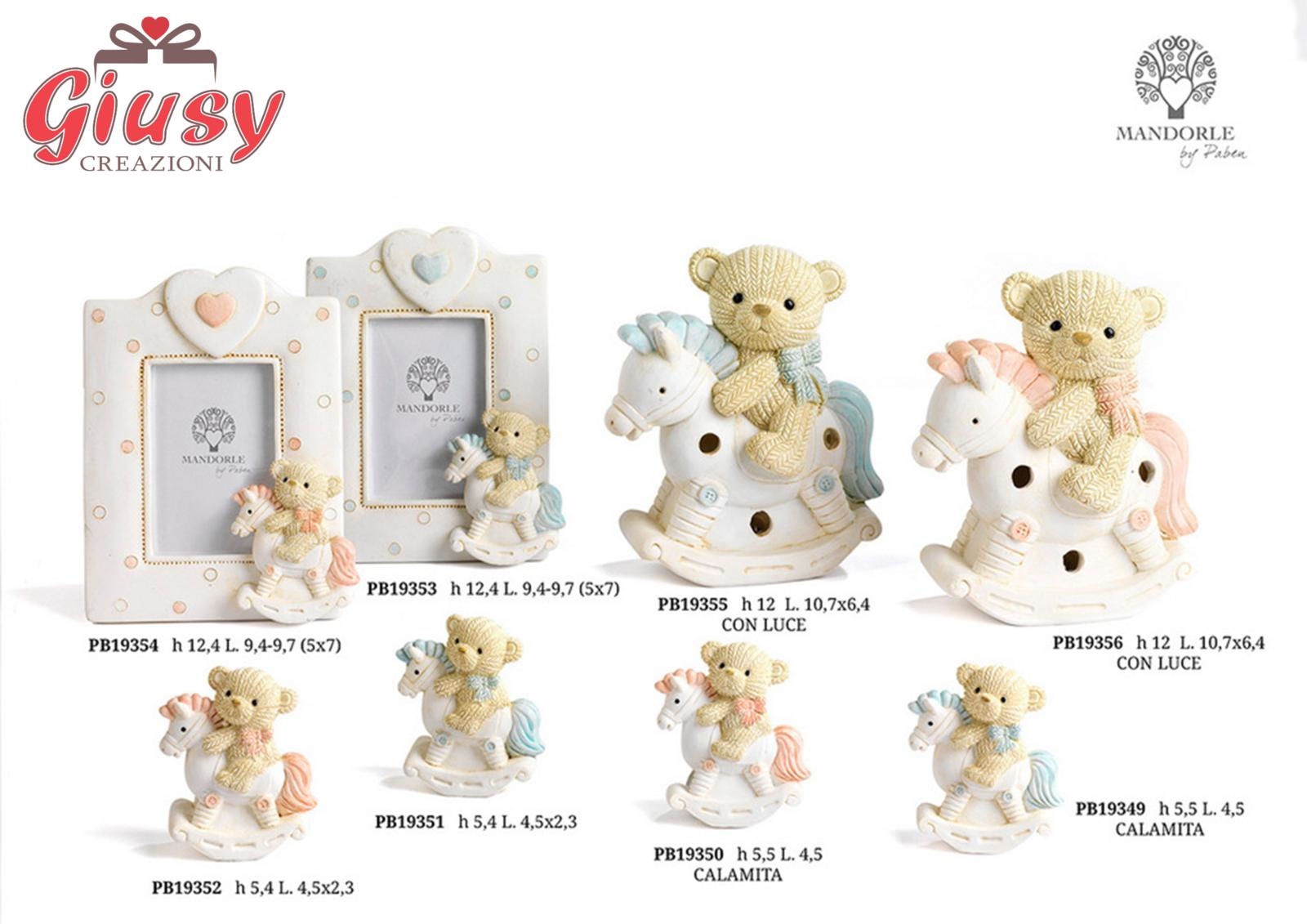 Cavallo A Dondolo Celeste Con Orsetto Lana In Resina Con Led H.12 Cm 2*36