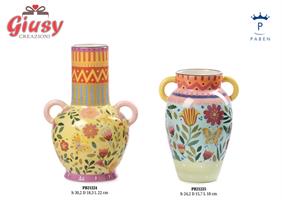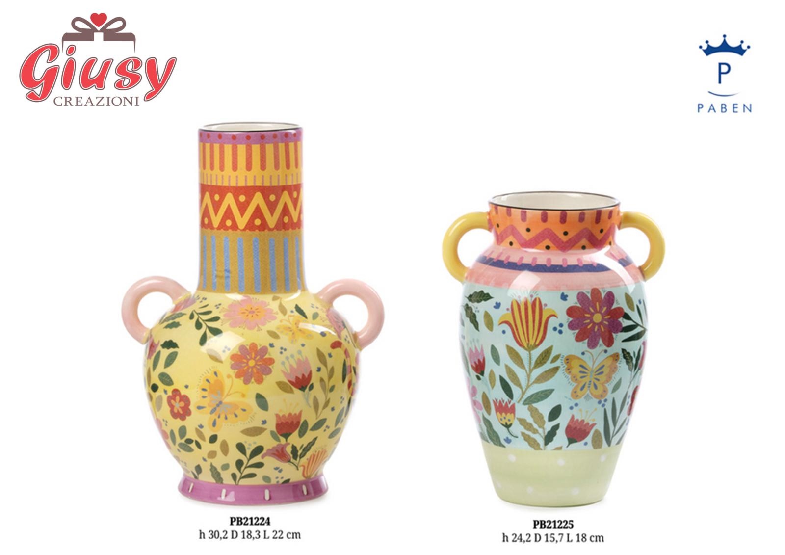 Vaso In Ceramica Decoro Fiori E Farfalle H.30,2 Cm 1*4