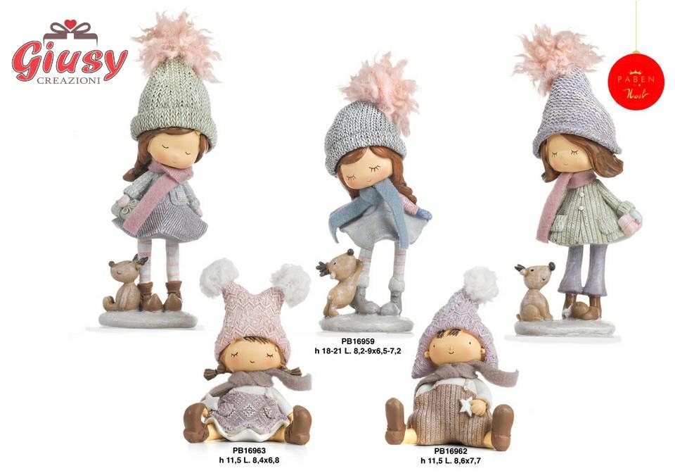 Ragazza Con Cappello E Cane In Resina E Stoffa 3 Soggetti Assortiti 21 Cm 3*24