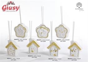 Diffondiprofumo Casetta Bimba Preghiera Con Calice Uva In Resina 8 Cm Completa Di Scatola