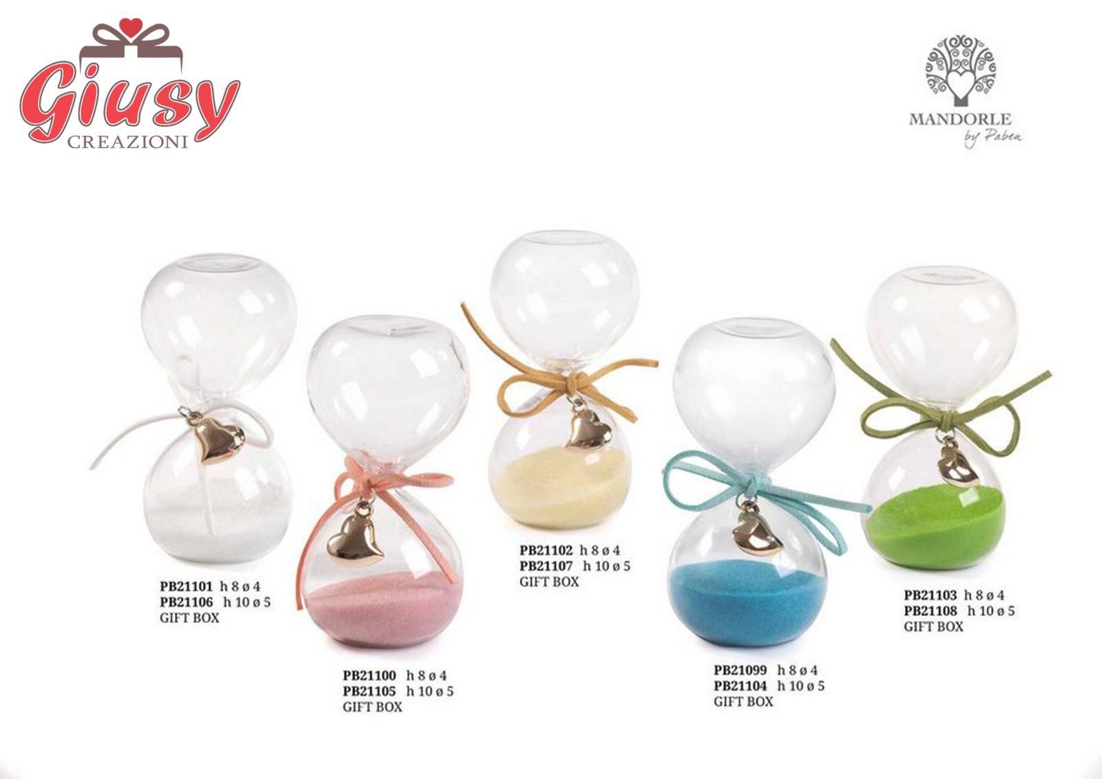Clessidra Crema Con Cuore Oro 10 Cm, In Vetro Completo Di Scatola