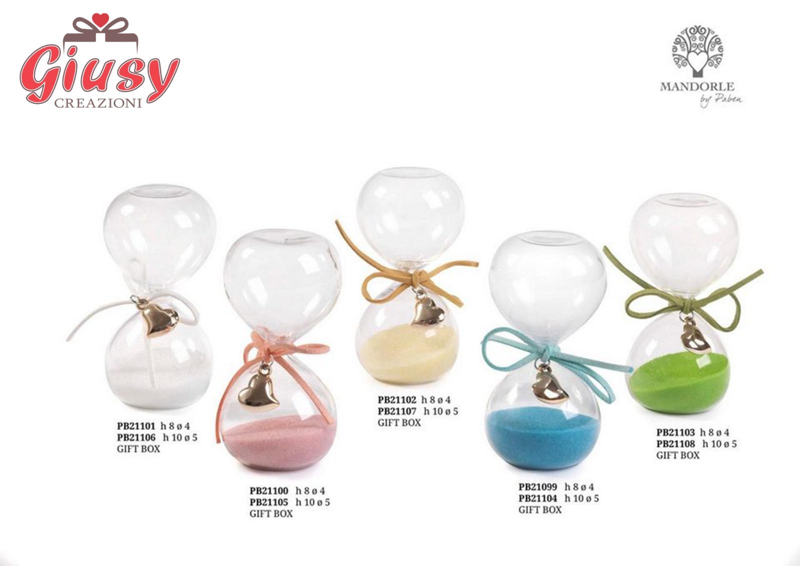 Clessidra In Vetro Con Sabbia Bianca E Ciondolo Cuore Oro In Metallo H.8 Cm Completa di Scatola 6*72