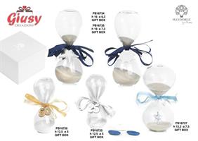 Clessidra Cuore In Vetro 11,7 Cm Con Cuore Di Porcellana Completo Di G.Box 4*48