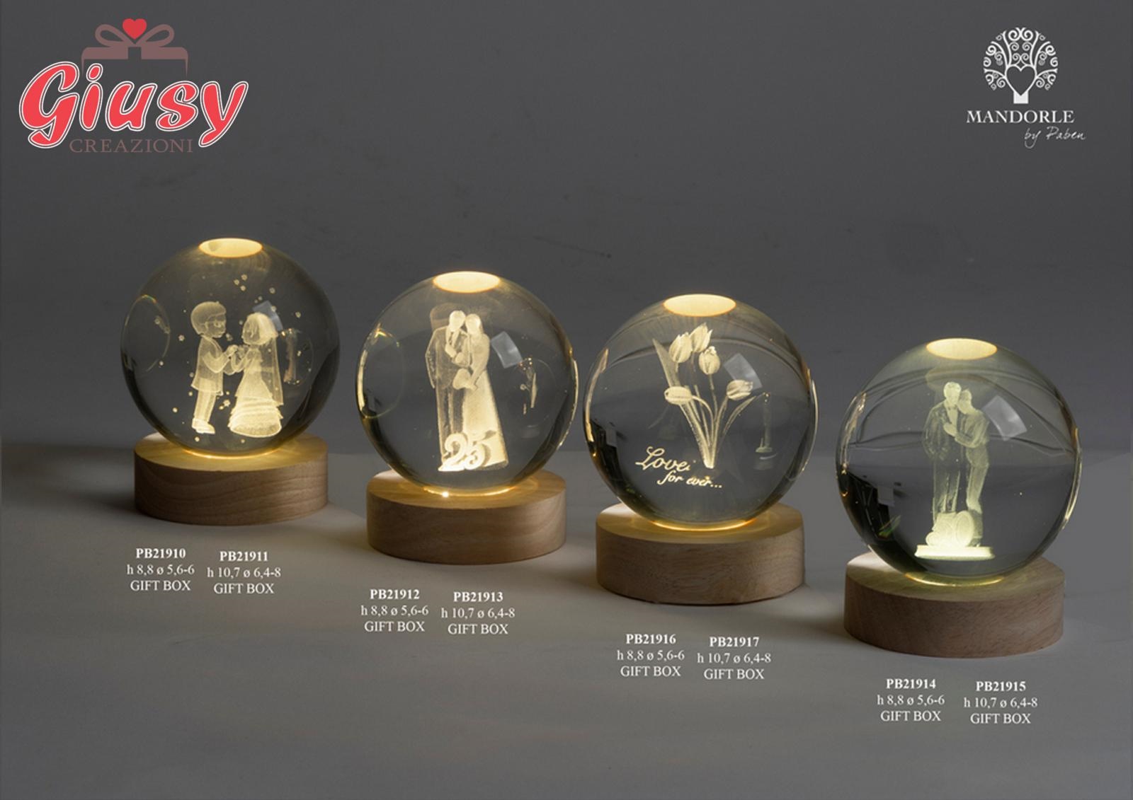 Globo In Cristallo A Led Su Base In Legno, Con Tulipani 8 Cm, Completa Di Scatola 1*12