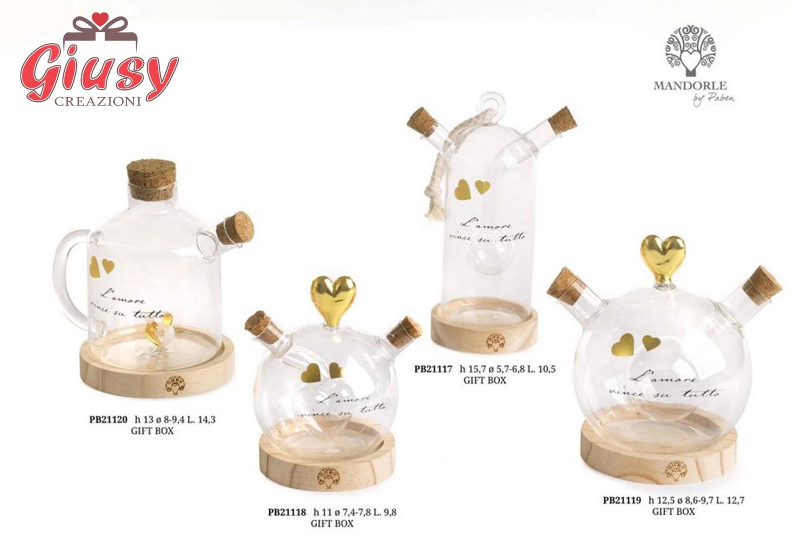 Oliera In Vetro Su Base In Legno H.15,7 Cm Completa Di Scatola 1*36