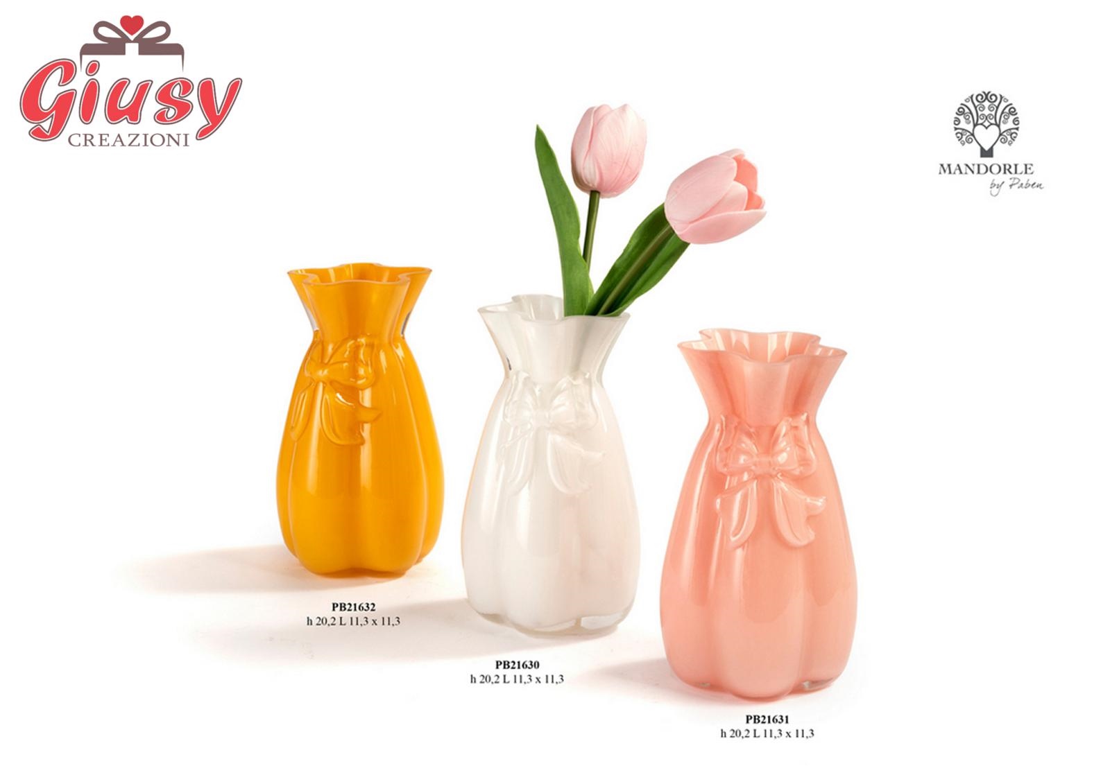 Vaso Bianco Con Fiocco In Rilievo In Vetro 20,2 Cm