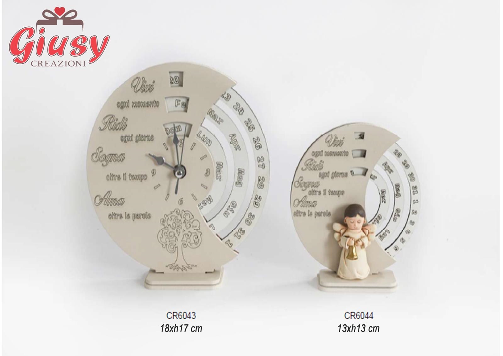 Orologio E Calendario Color Sabbia In Legno, 18X17 Cm