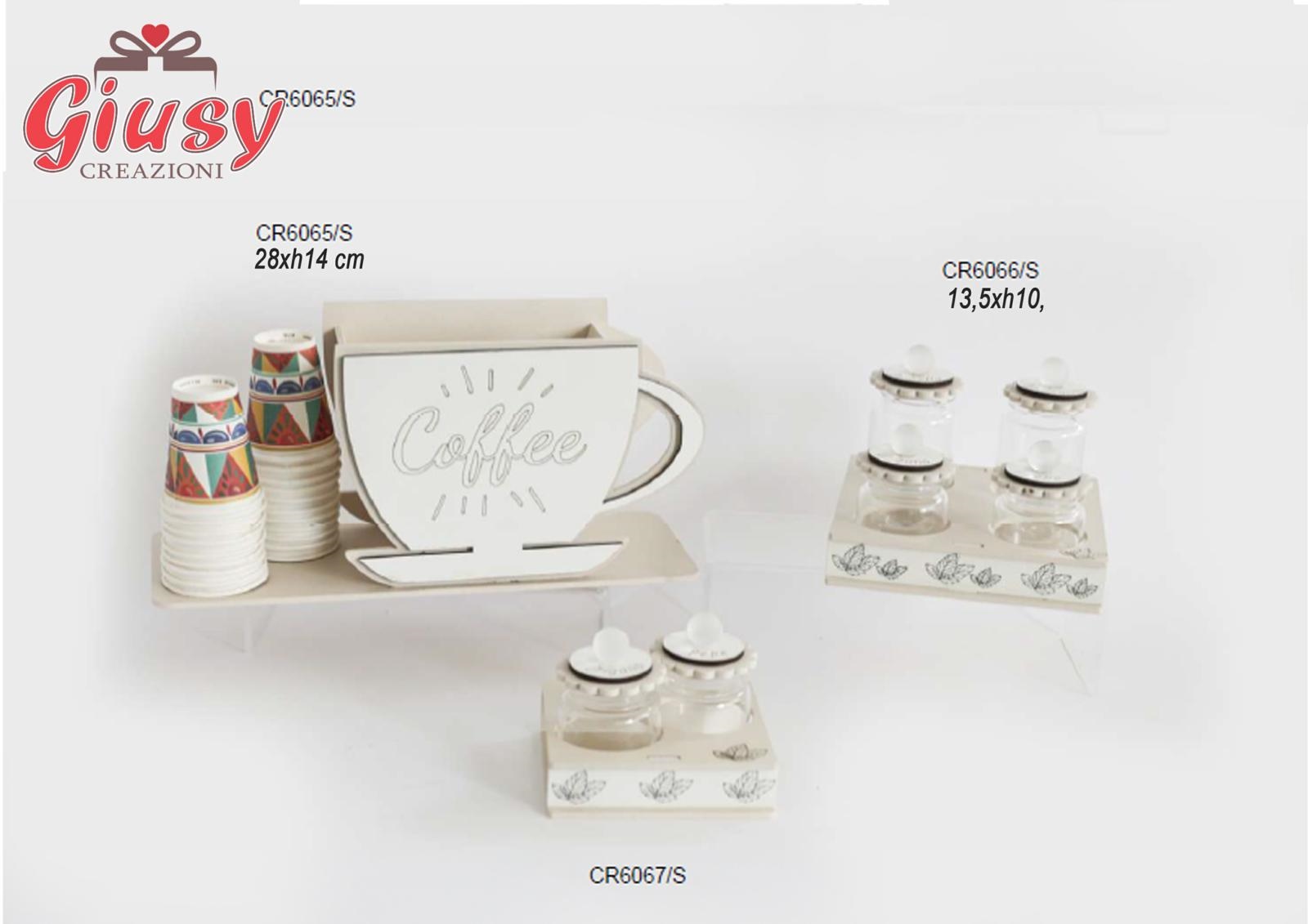 Portacialde E Porta bicchierini Da Caffè In Legno Color Sabbia Completo Di Scatola 28XH14 Cm
