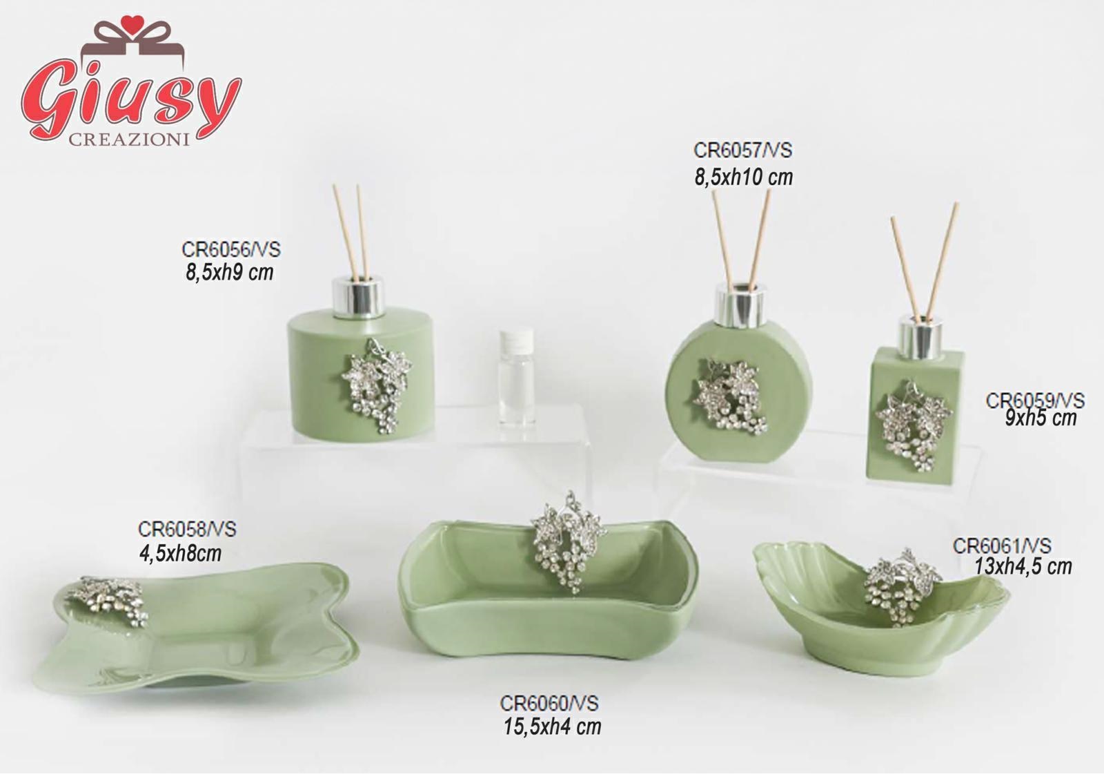 Svuotatasche In Vetro Color Verde Salvia Con Uva 13XH4,5 Cm Completo Di Scatola
