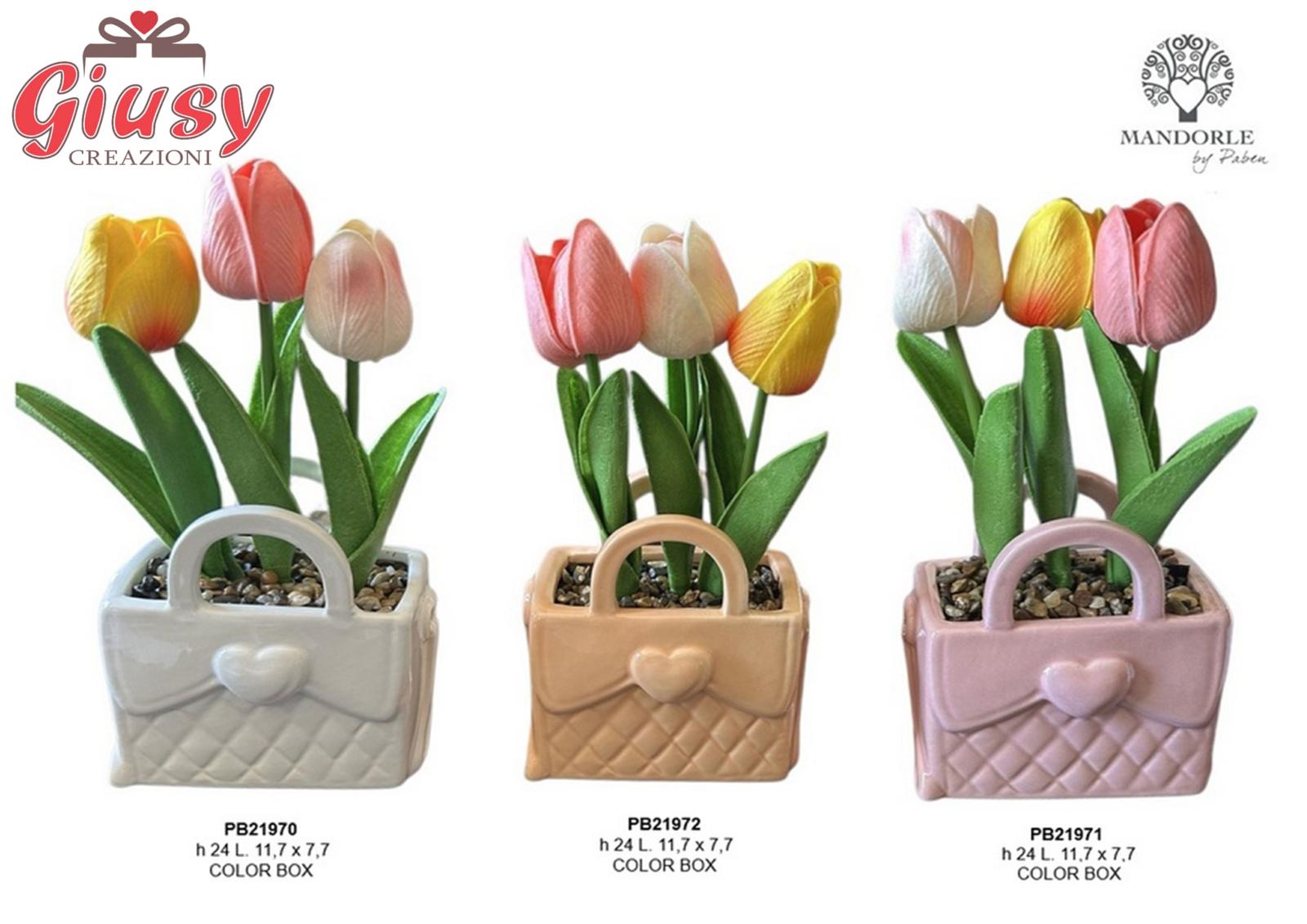 Vaso Tuplipani A Forma Di Borsetta Rosa In Ceramica E Plastica 24 Cm Completa Di Scatola 2*16