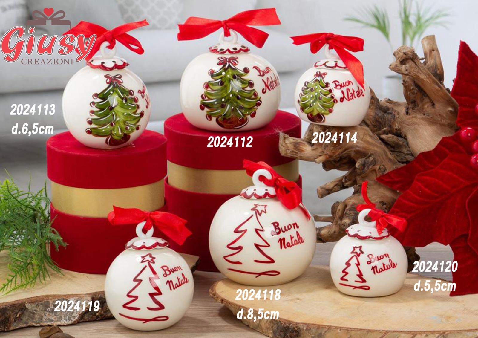 Pallina Di Natale In Ceramica Di Capodimonte Diametro 6,5Cm Decoro Albero Verde Completo Di Scatola Cilindrica Velluto Rosso