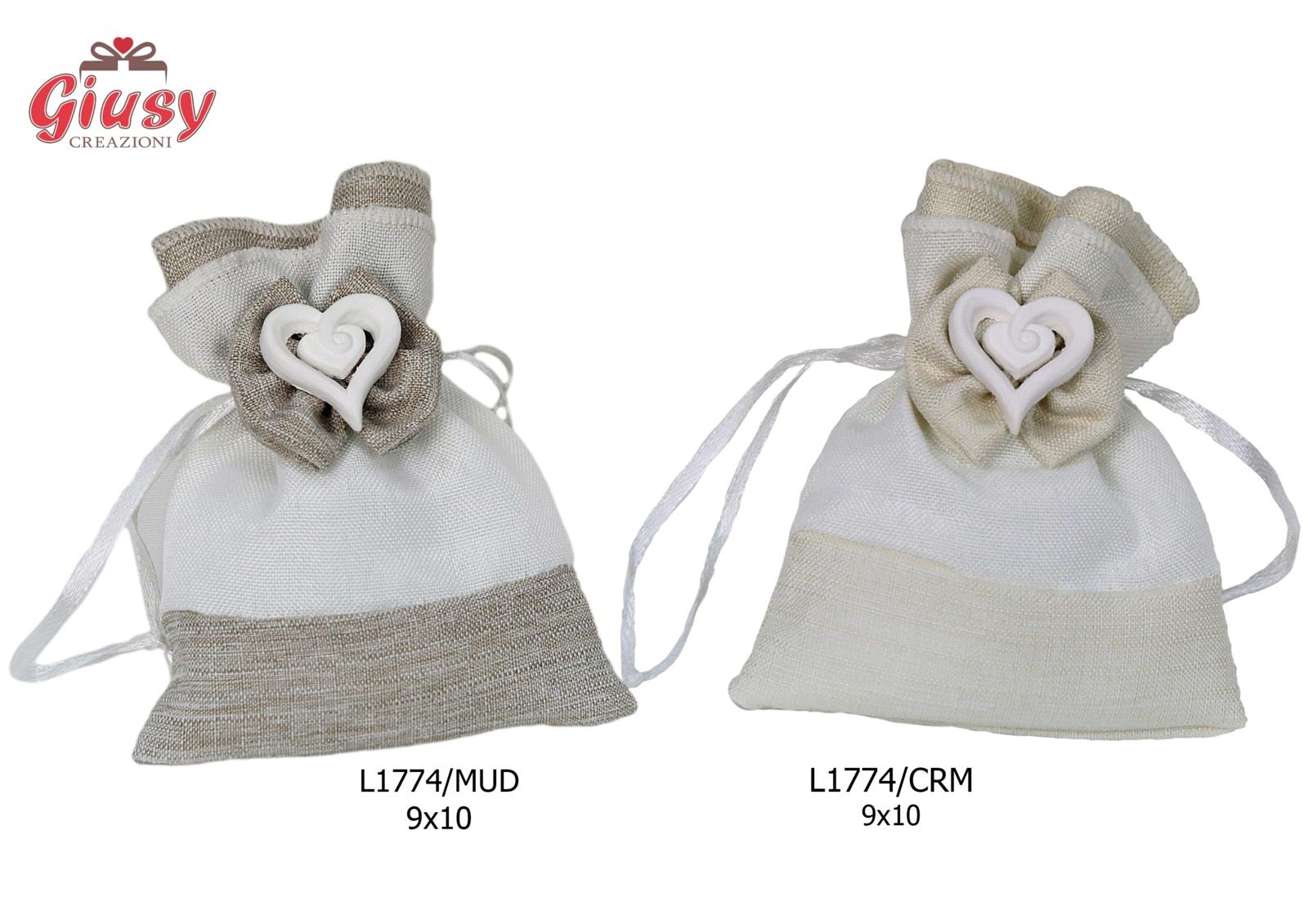 Sacchetto Doppio Tessuto Piccolo Con Cuoricino Di Gesso Cm 9x10 12*720