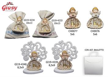 Sacchetto In Juta Avana Con Angelo Celeste 10x13 Cm Completo Di Confetti