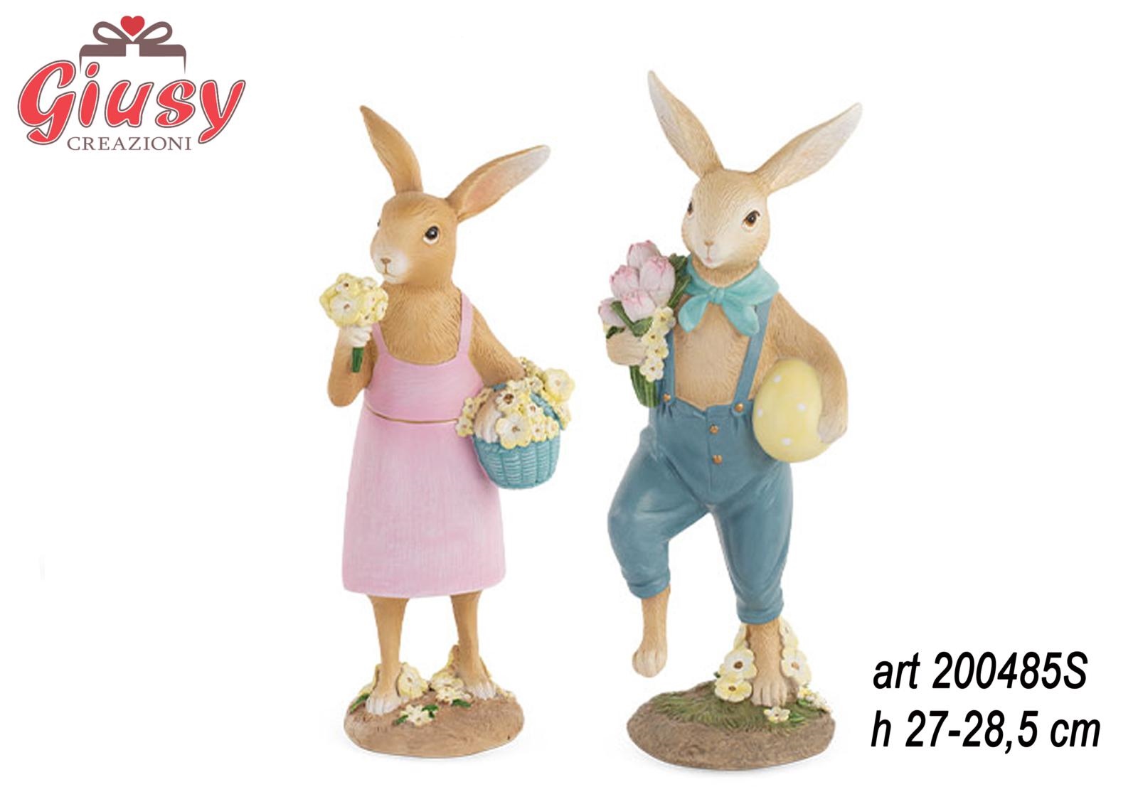 Conigli Con Fiori, Due Assortiti In Poliresina H27 Cm e 28 Cm 4*12