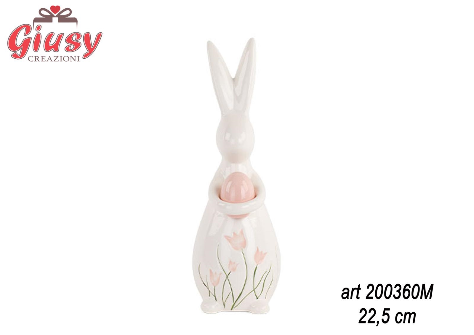 Coniglio Con Uovo E Tulipani Con Rosa H 22,5 Cm 4*24