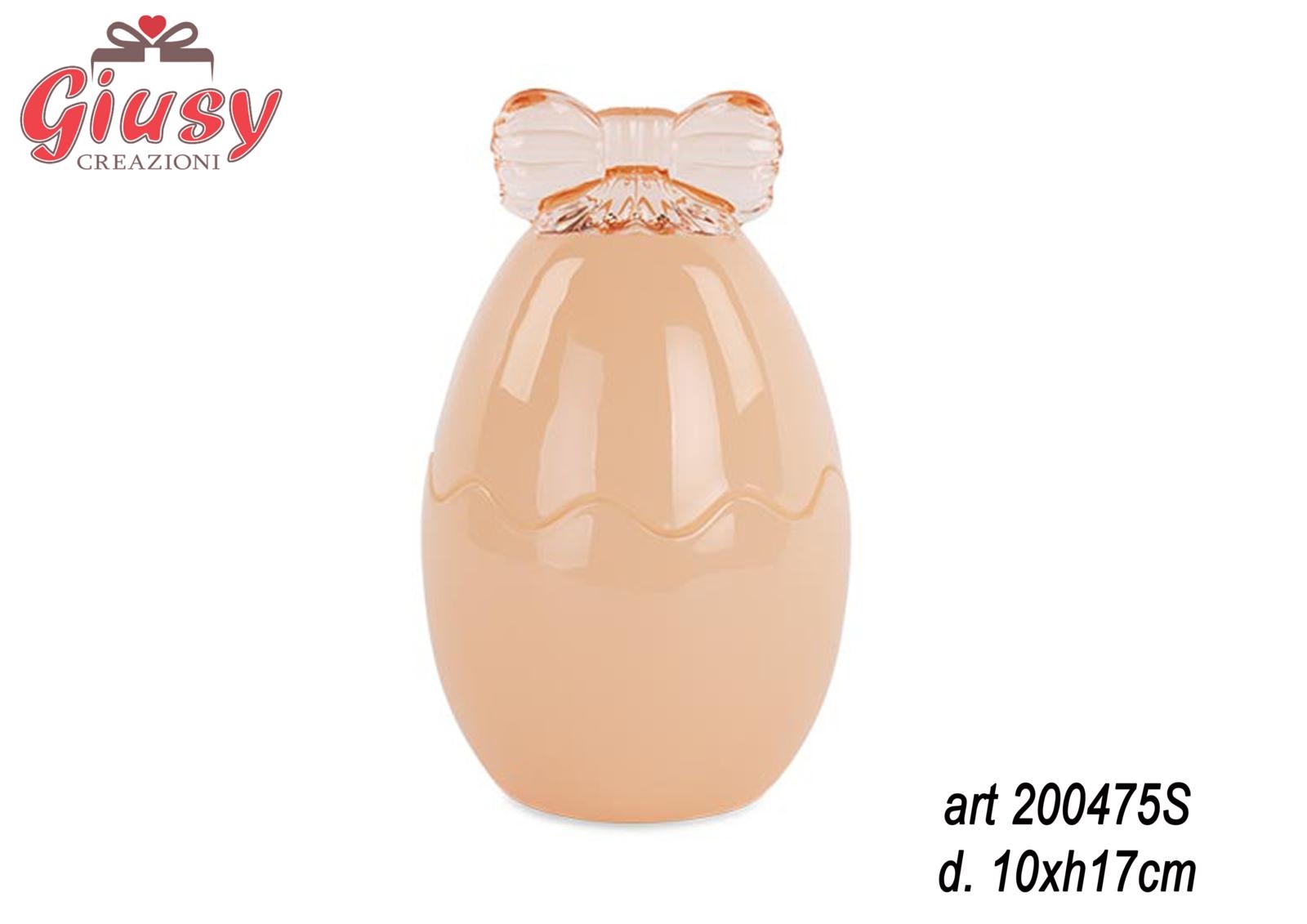 Contenitore Uovo In Vetro Colore Pesca Con Fiocco D.10X H 17 Cm