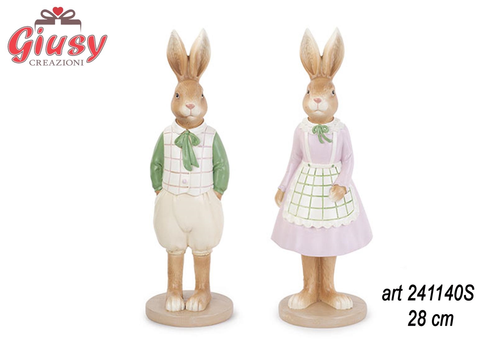 Coppia Coniglietti Verde E Lilla In Poliresina, Due Assortiti H 28 Cm 4*8