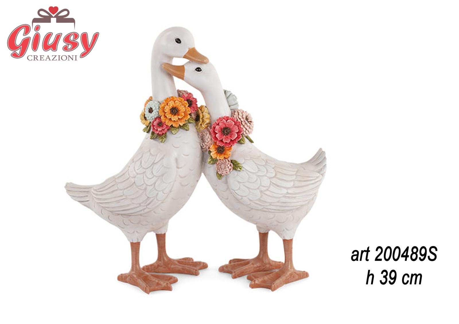 Coppia Di Oche In Poliresina H 39,5 Cm