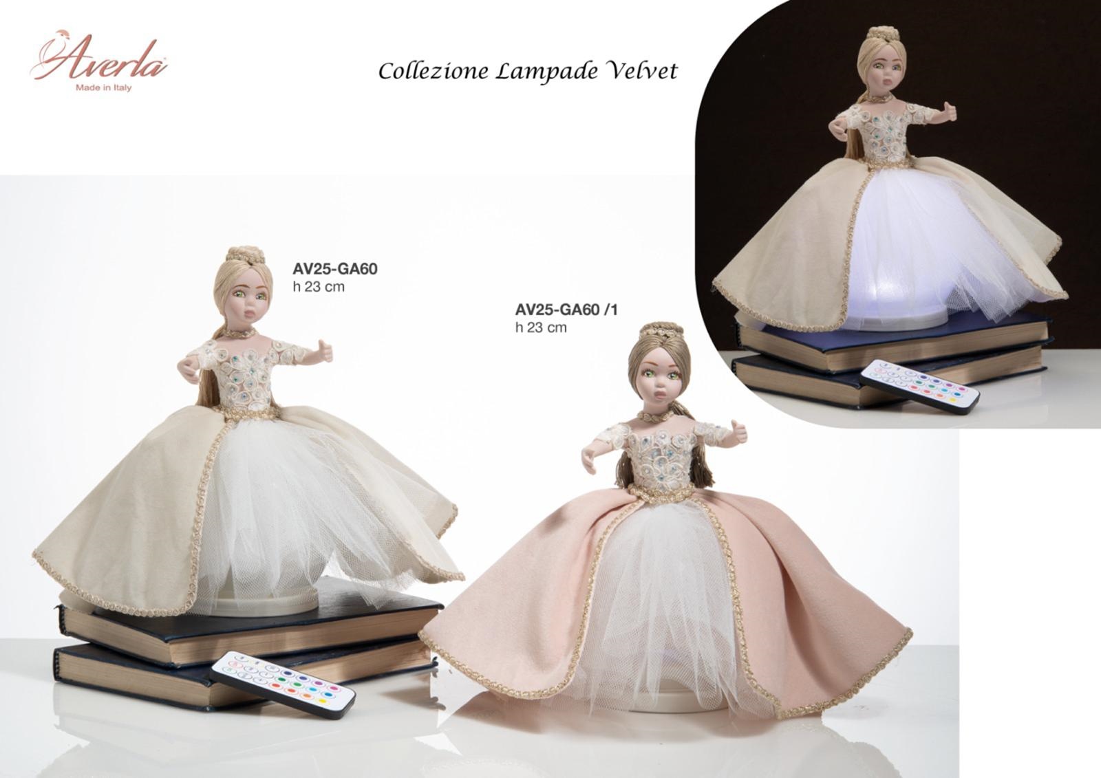 Lampada Sfera Grande Con Dama In Porcellana Di Capodimonte Vestito In Velluto Colore Rosa Cipria H 23 Cm, Completa Di Scatola